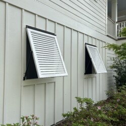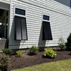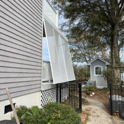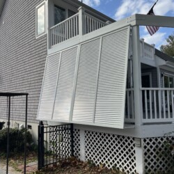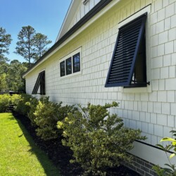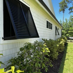 Add a coastal aesthetic to your home with iconic Bahama shutters. Bahama shutters (sometimes called Bermuda shutters), provide shade when open and an extra layer of privacy or protection when closed. Typically suspended from a hinge and designed to cover the entire window, Bahama shutters also function as shade or privacy for porches as well. Wilmington Awning aluminum shutters are available in a variety of colors and protection levels.