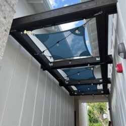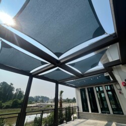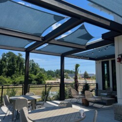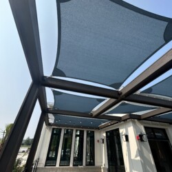 Shade Sails can be twisted, overlapped, and angled providing form and function wherever you need it! These sails are perfect for any residential or commercial space that may need some extra shade without obstructing a view. Shade sails are a fun and dynamic way to protect yourself or your customers from the sun. Custom shade sails can be designed to fit virtually in any space.