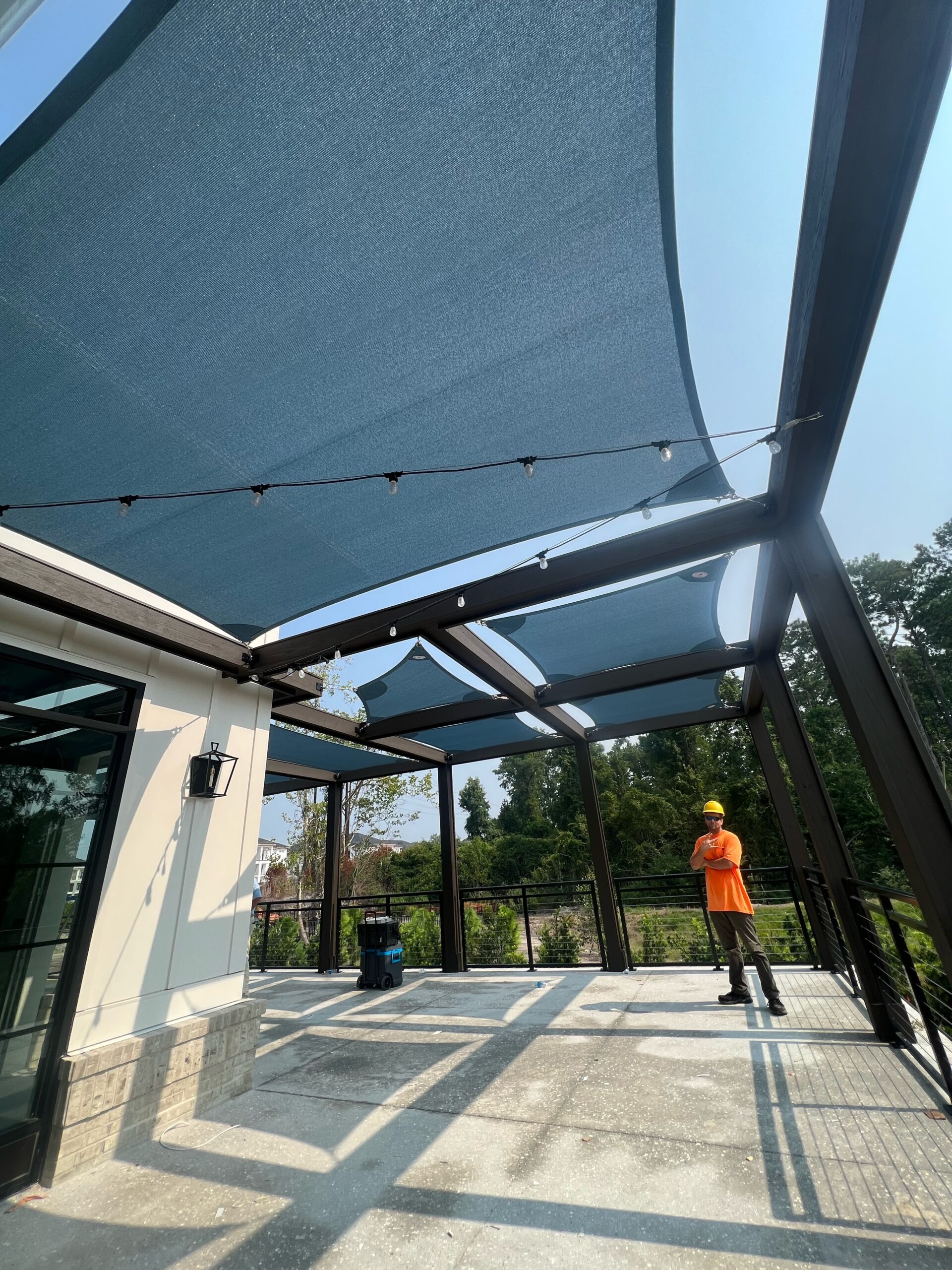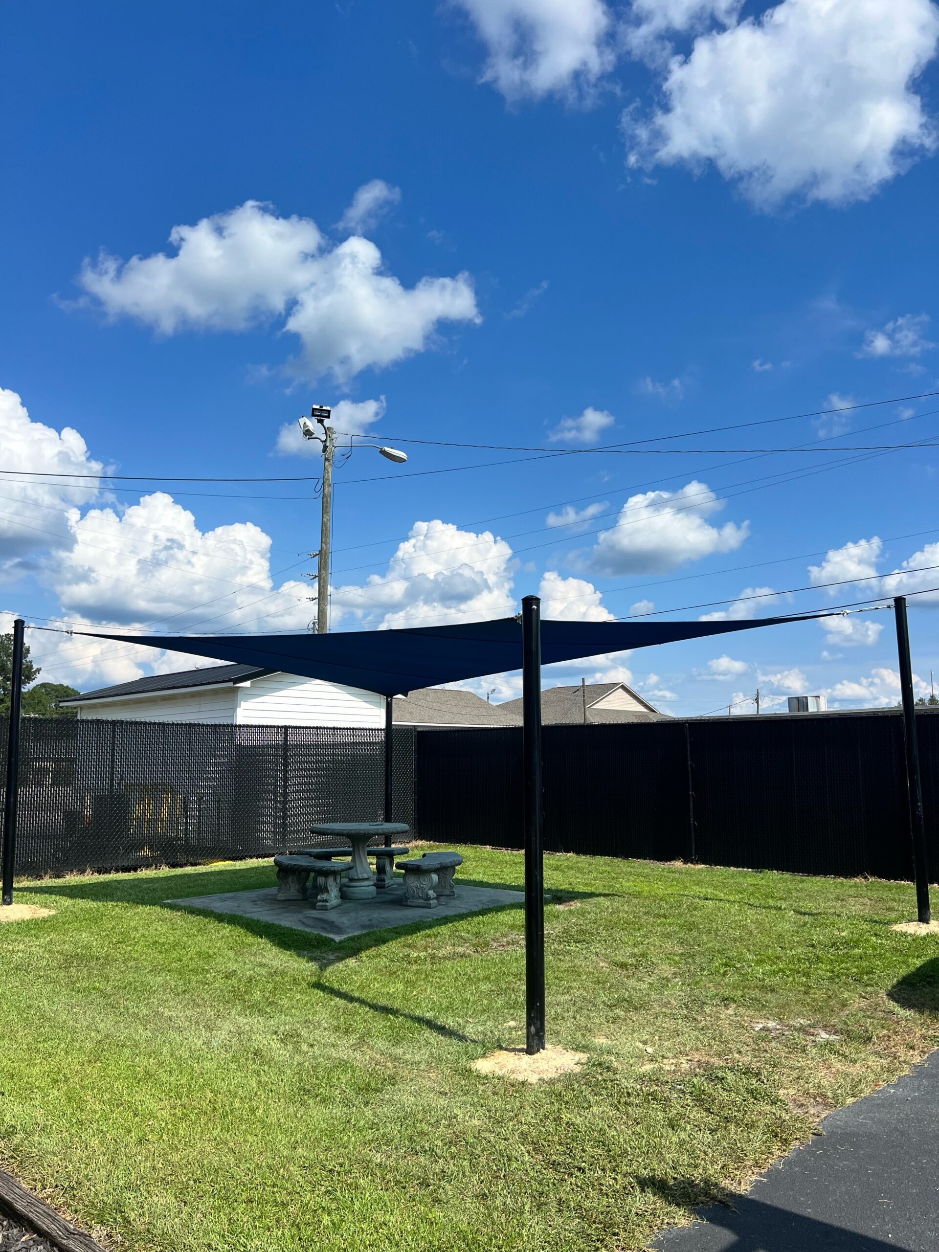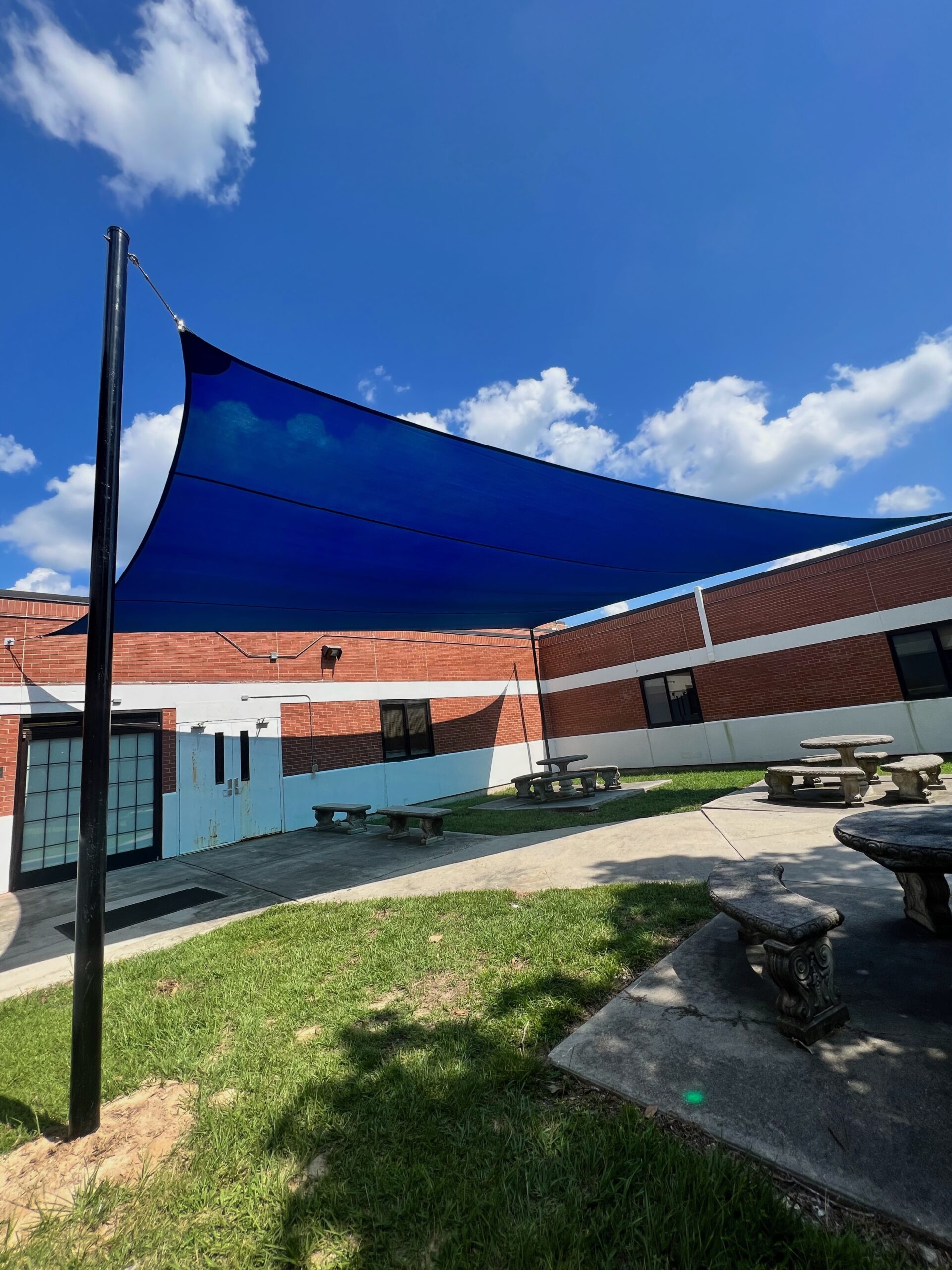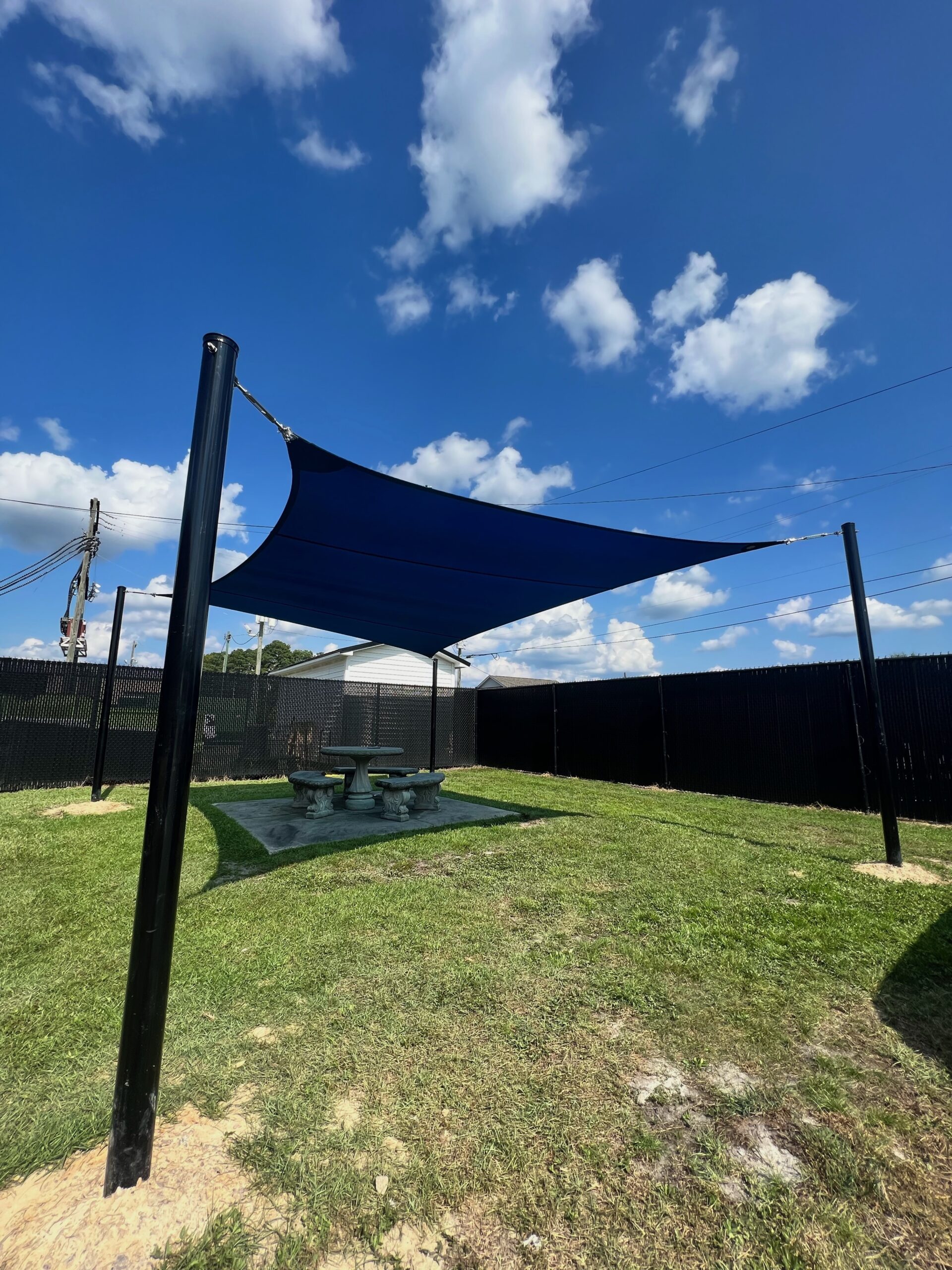 After your shade sails have been fully designed to meet your needs, we can order and install. We use galvanized steel posts to secure the shade sails to avoid damage and splitting. Depending on the project, we can also attach to a building or wall.