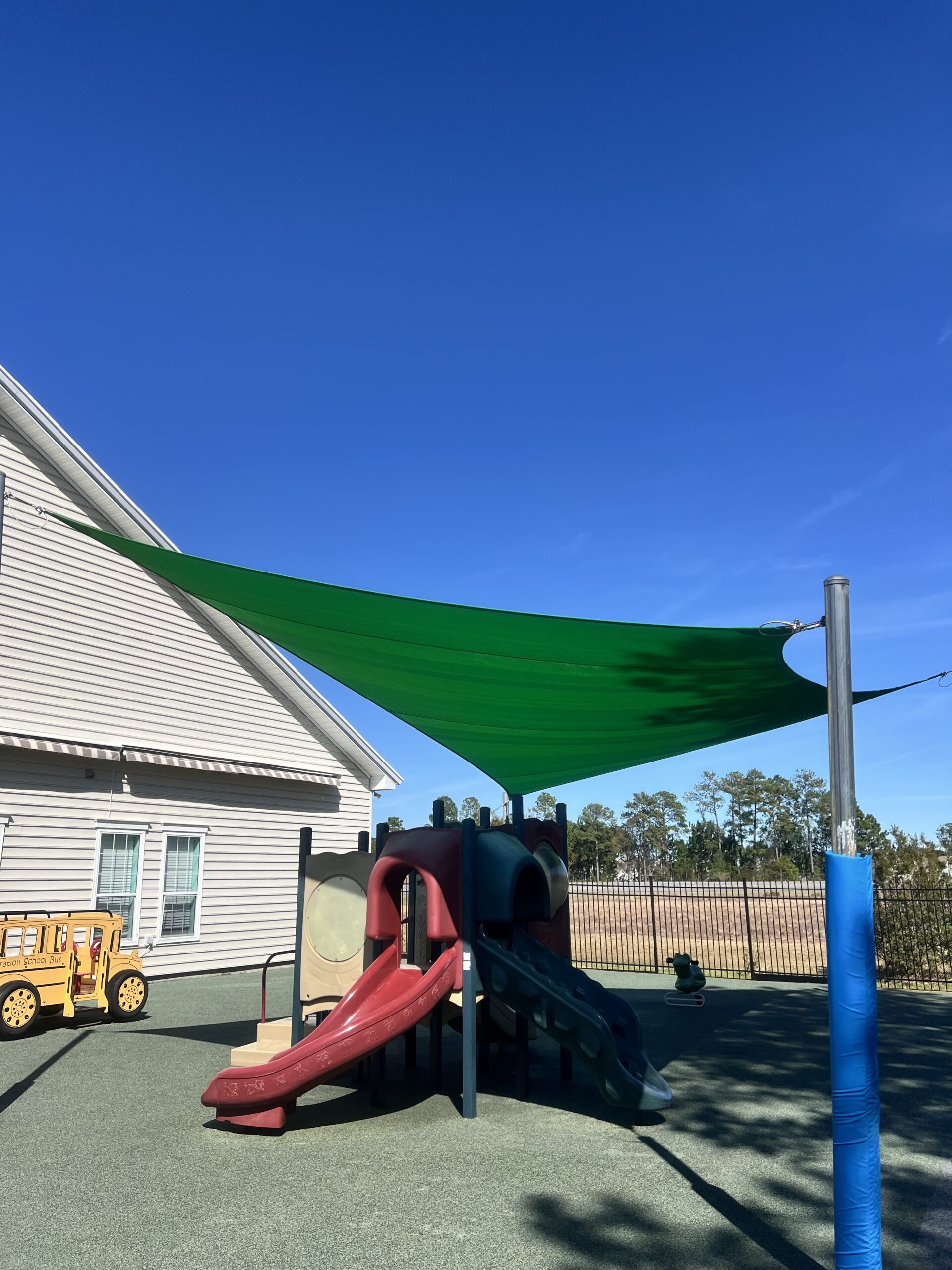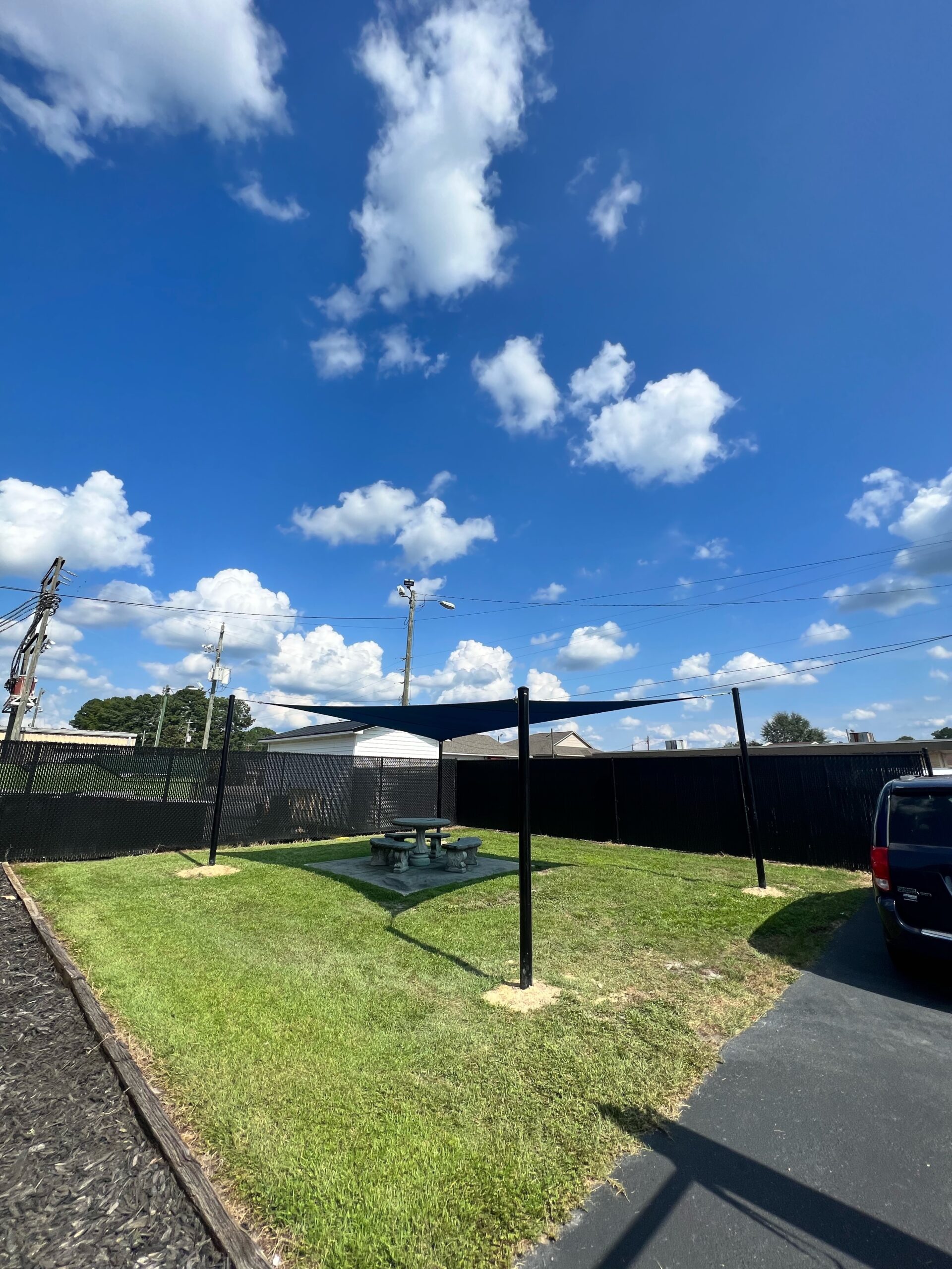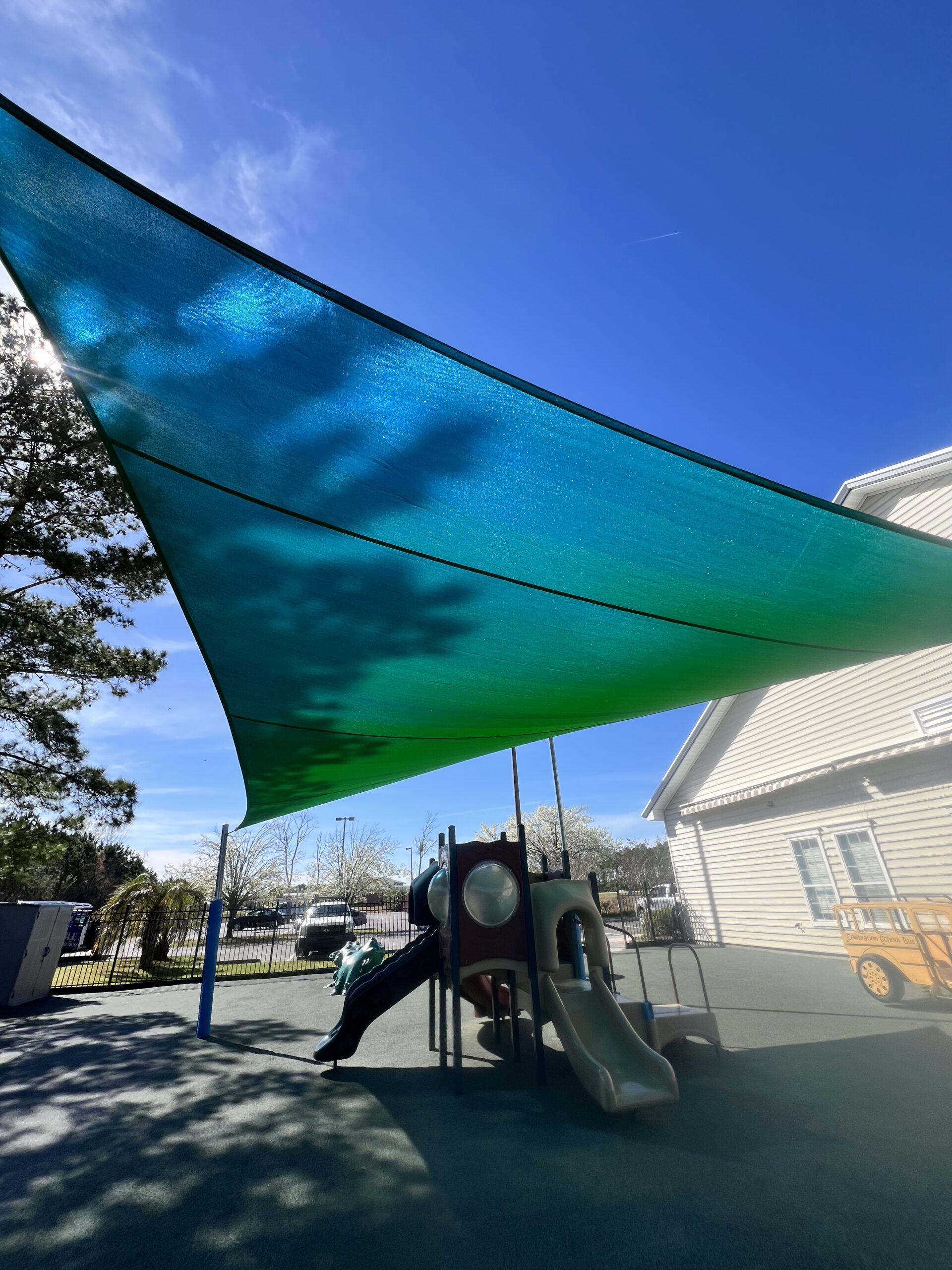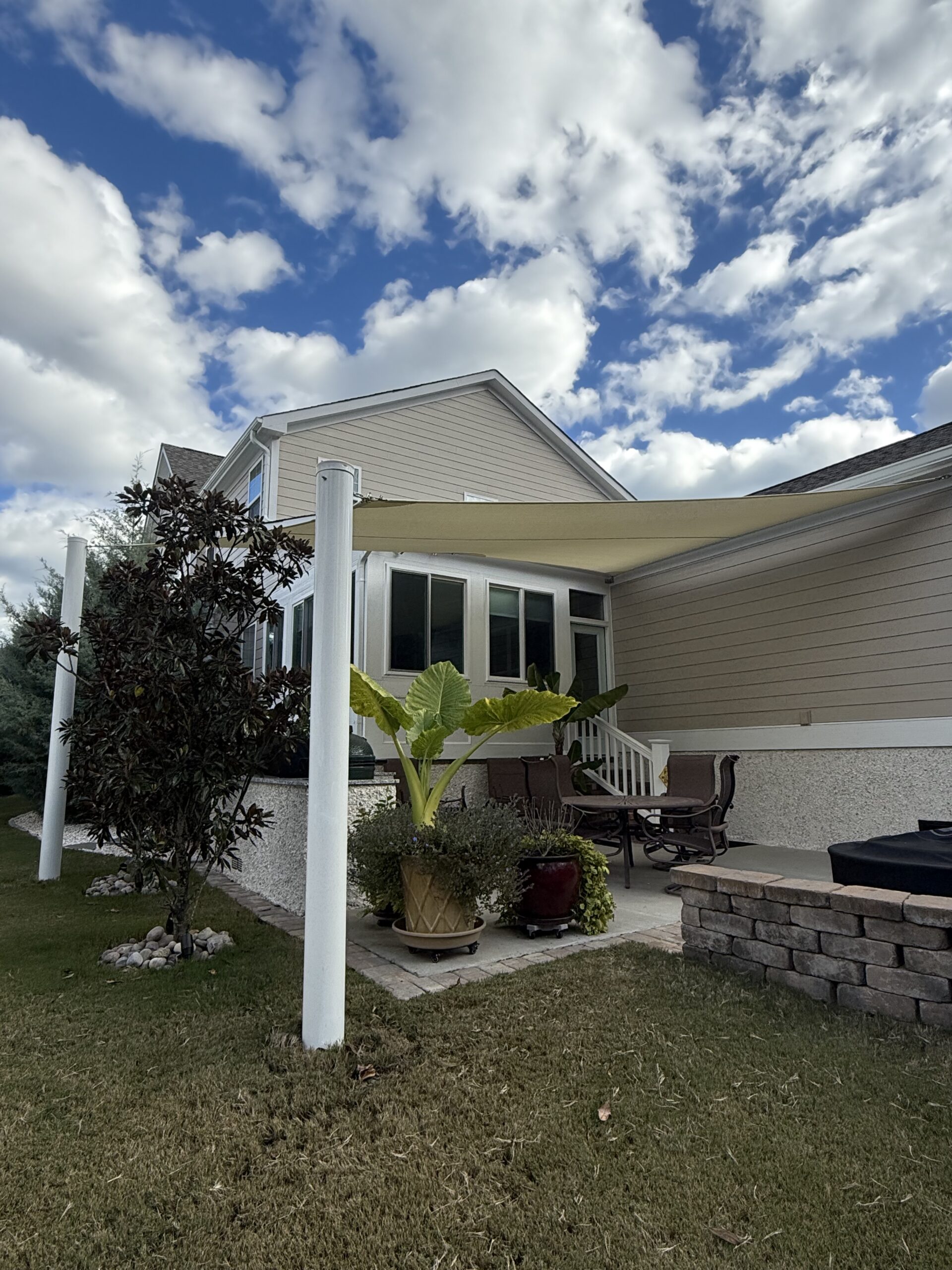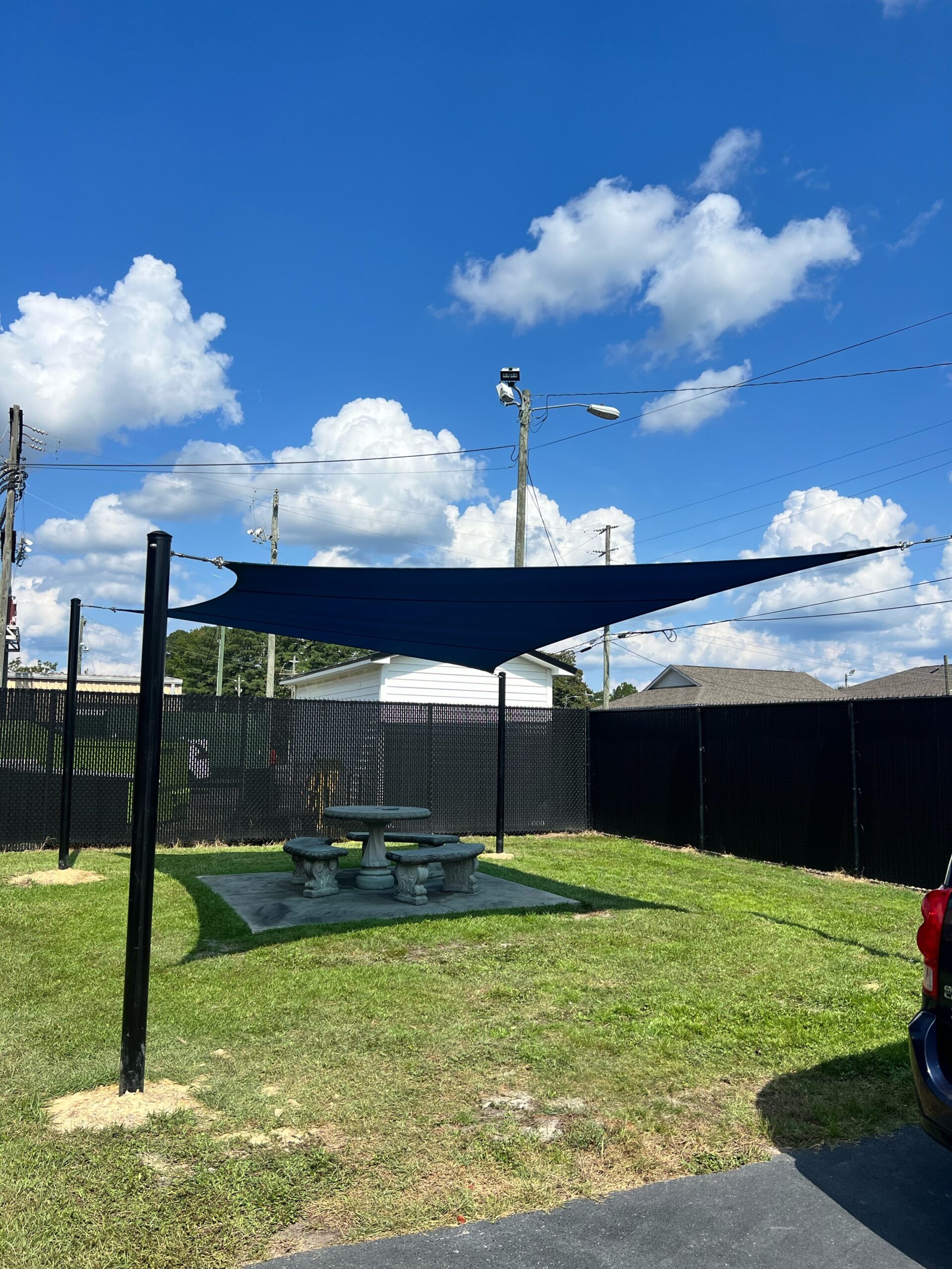 After your shade sails have been fully designed to meet your needs, we can order and install. We use galvanized steel posts to secure the shade sails to avoid damage and splitting. Depending on the project, we can also attach to a building or wall.