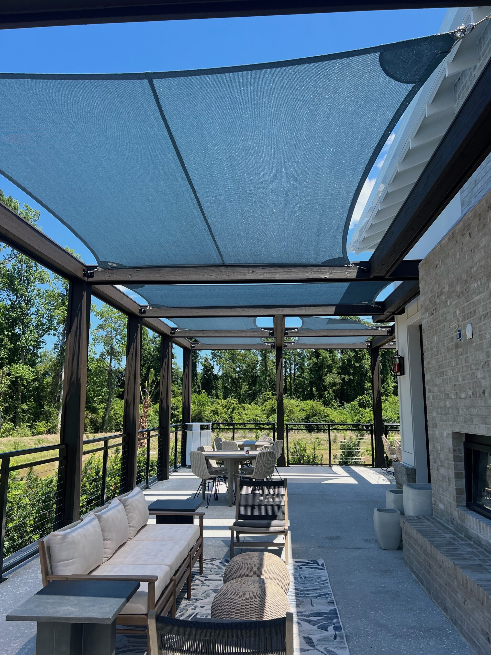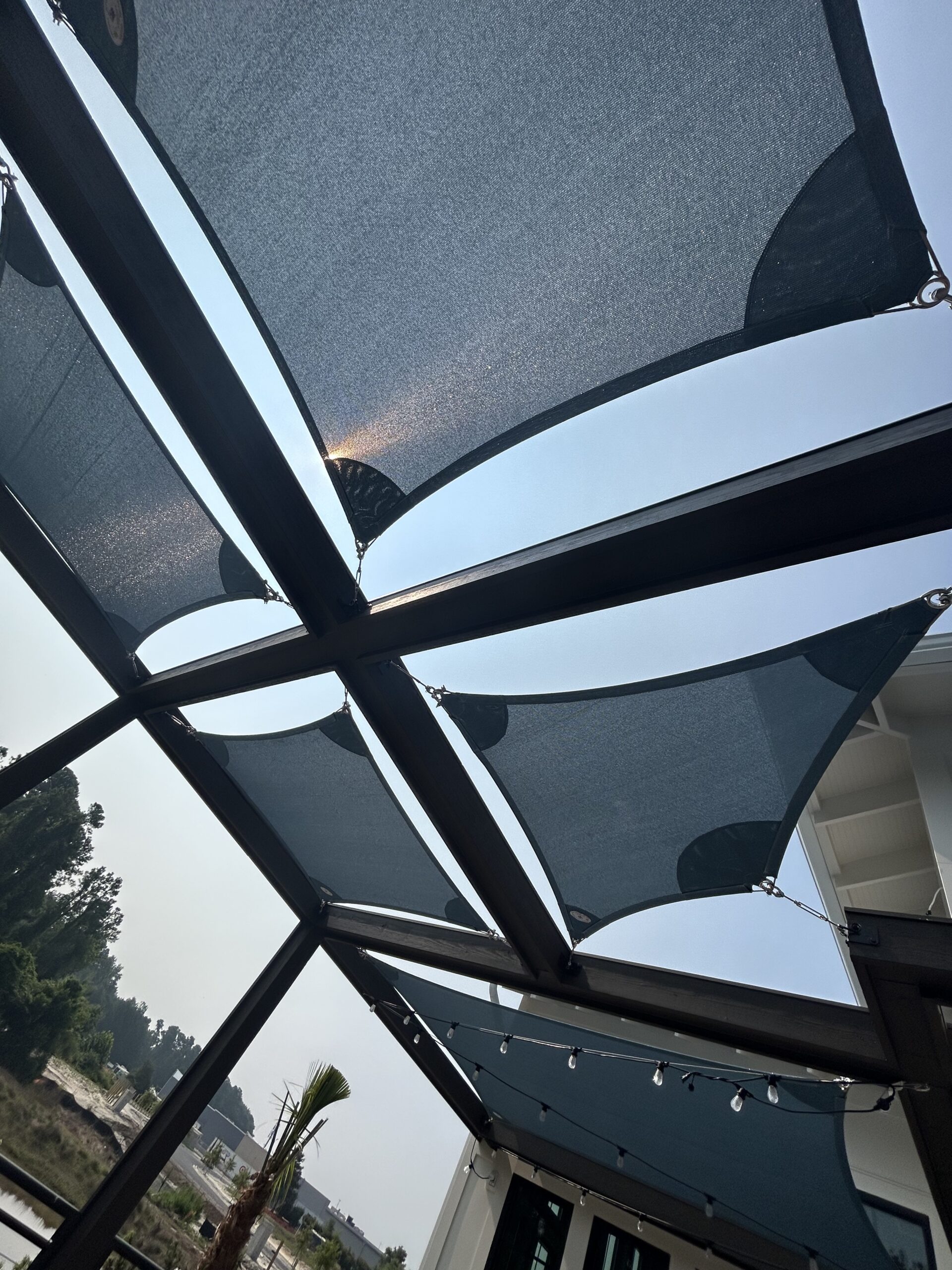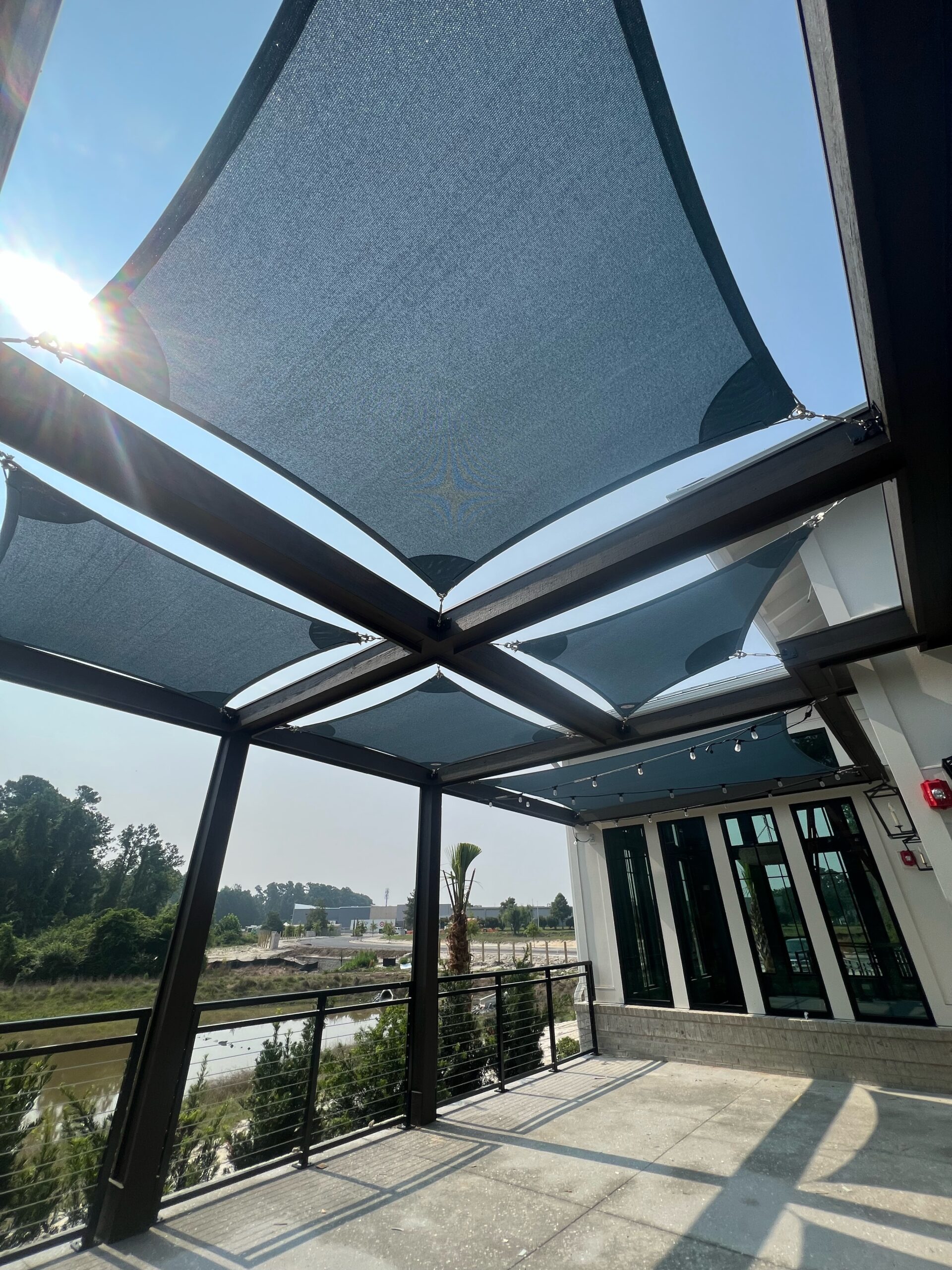 Shade Sails can be twisted, overlapped, and angled providing form and function wherever you need it! These sails are perfect for any residential or commercial space that may need some extra shade without obstructing a view. Shade sails are a fun and dynamic way to protect yourself or your customers from the sun. Custom shade sails can be designed to fit virtually in any space.