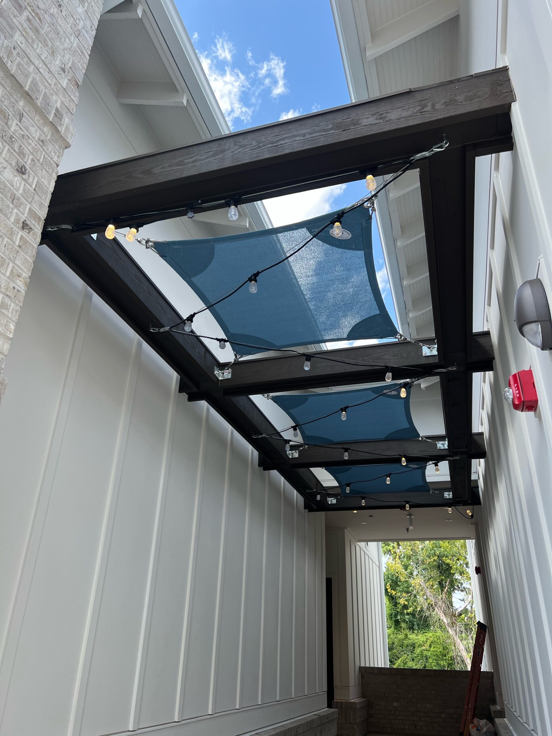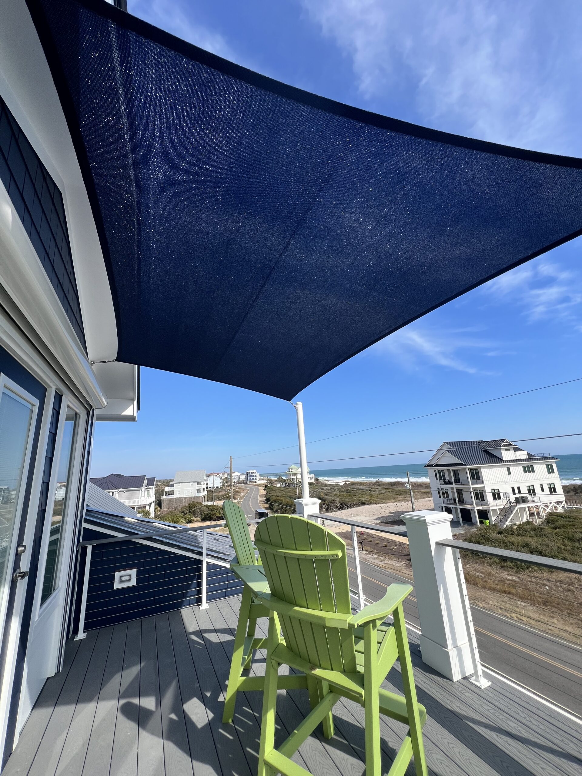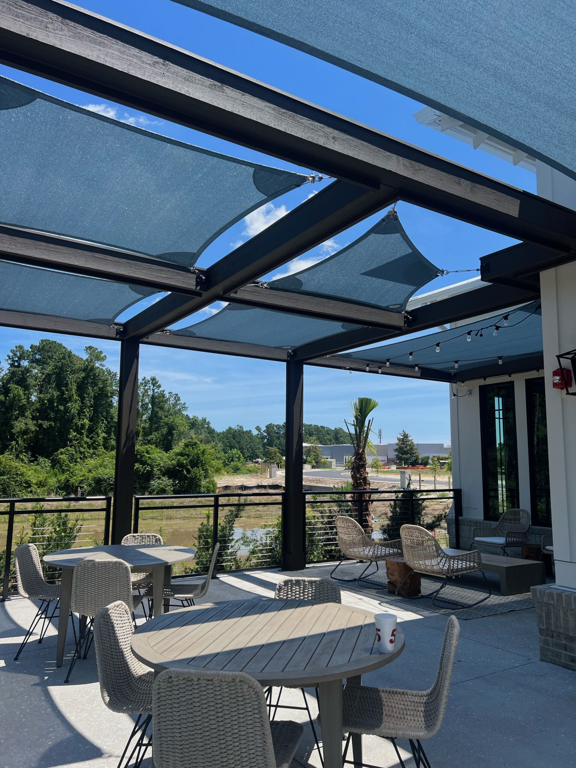 Shade Sails can be twisted, overlapped, and angled providing form and function wherever you need it! These sails are perfect for any residential or commercial space that may need some extra shade without obstructing a view. Shade sails are a fun and dynamic way to protect yourself or your customers from the sun. Custom shade sails can be designed to fit virtually in any space.