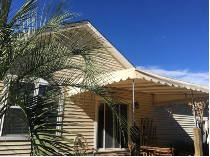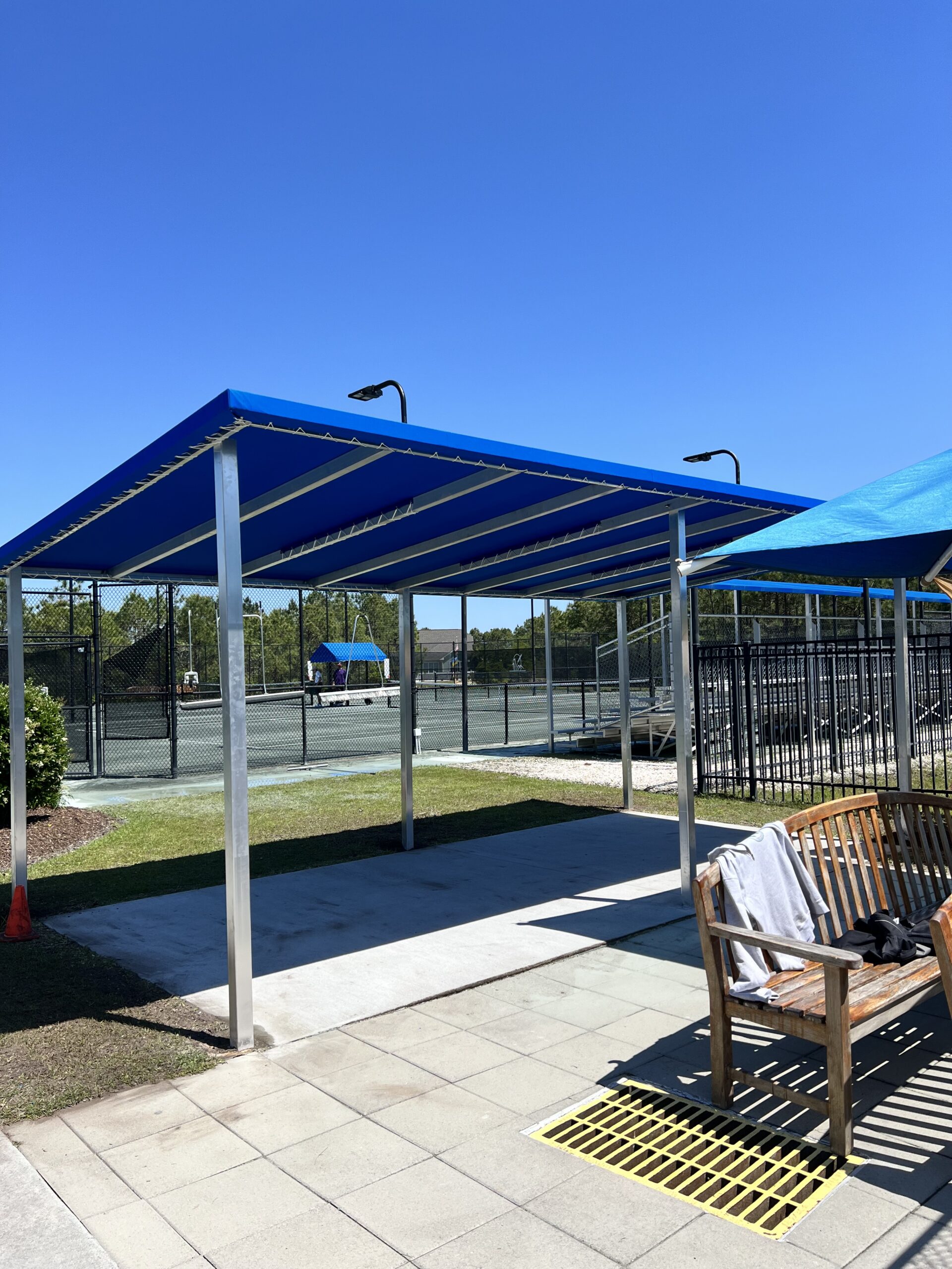 We also offer special commercial vinyl and Firesist awning and canopy material in a wide variety of colors. Opting for a stationary awning brings excellent shade solutions to your deck, outdoor restaurant seating, or permanent poolside area. Whether as a freestanding structure with upright support posts or attached to an exterior wall with front supports, canopies offer versatile options. They resemble sheds but boast the ability to extend much further from the installation point, providing expansive coverage and flexibility. Want to make your business stand out? Take customization to the next level and add your logo. Functional and aesthetically pleasing, our awnings are the perfect finishing touch for your home or business!